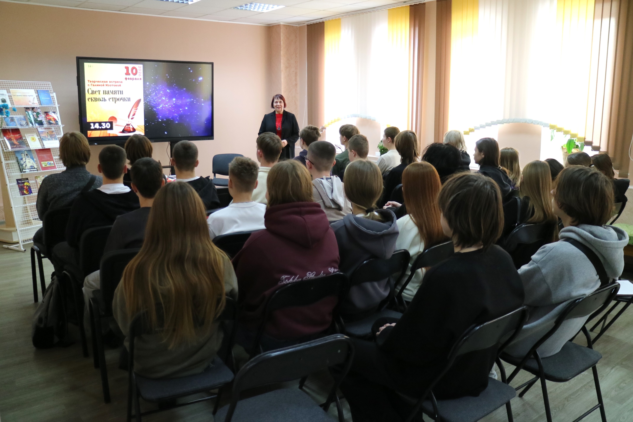 В честь Дня памяти воинов-интернационалистов библиотека провела трогательную встречу студентов Жодинского политехнического колледжа с известной поэтессой Галиной Сергеевной Изотовой. Центральной темой встречи стали подвиги советских солдат времен Великой Отечественной и Афганской войны.