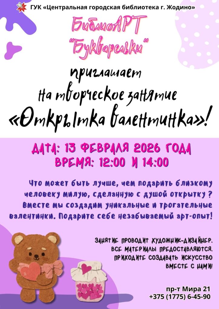 Анонс занятия библиоАРТа «Букварельки» на 13 февраля