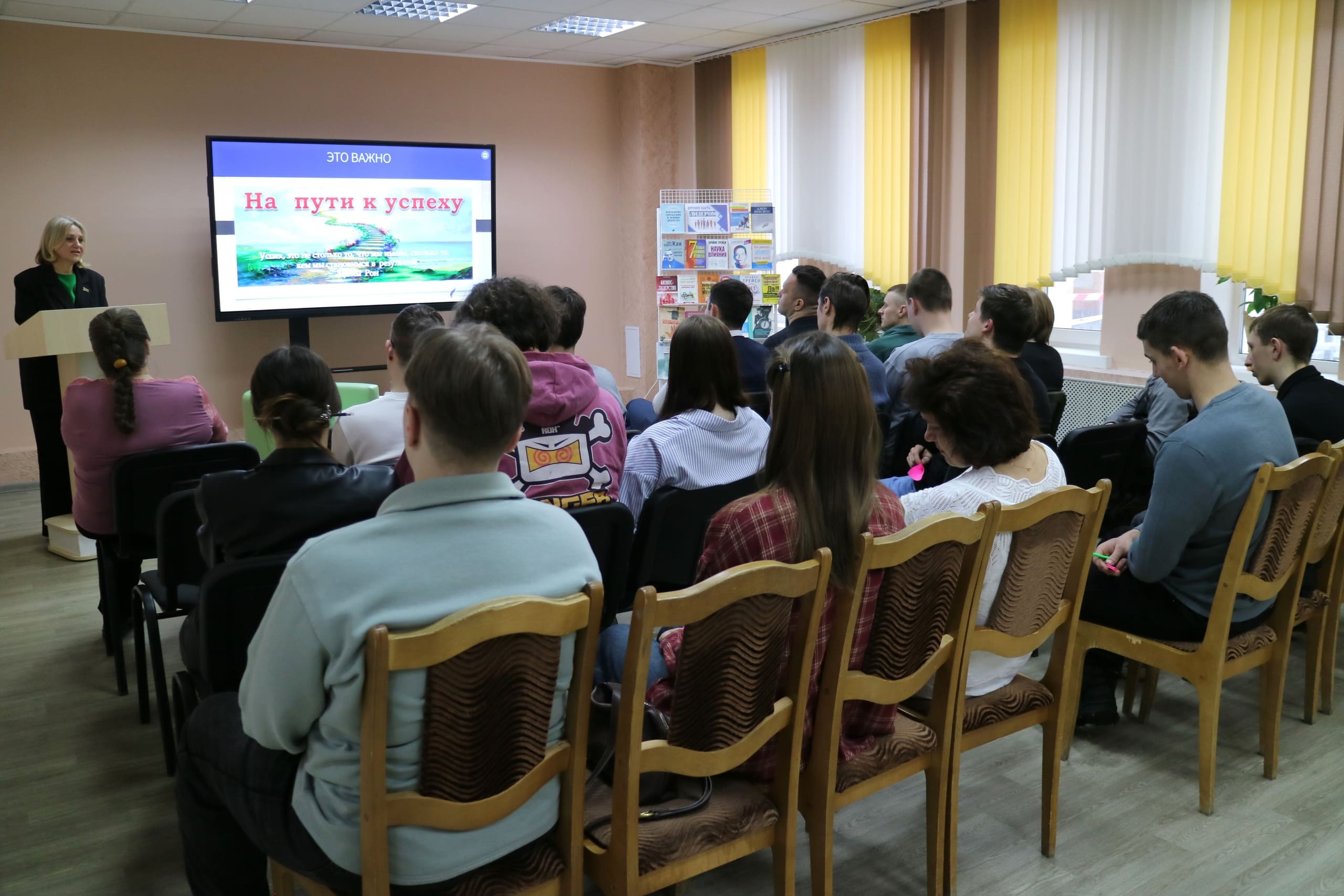 Кроме того, присутствующие приняли участие в популярном психогеометрическом тестировании, позволяющем определить тип личности. Молодежь ознакомилась с книгами современных психологов и экспертов, способствующими саморазвитию и достижению успехов.
