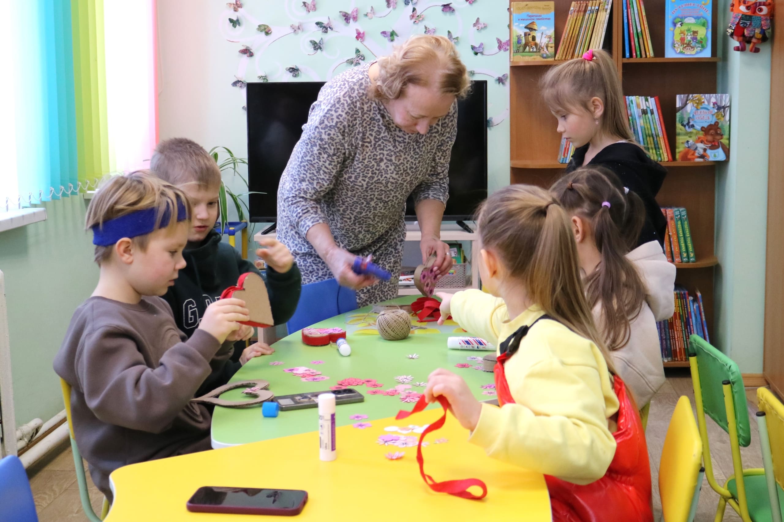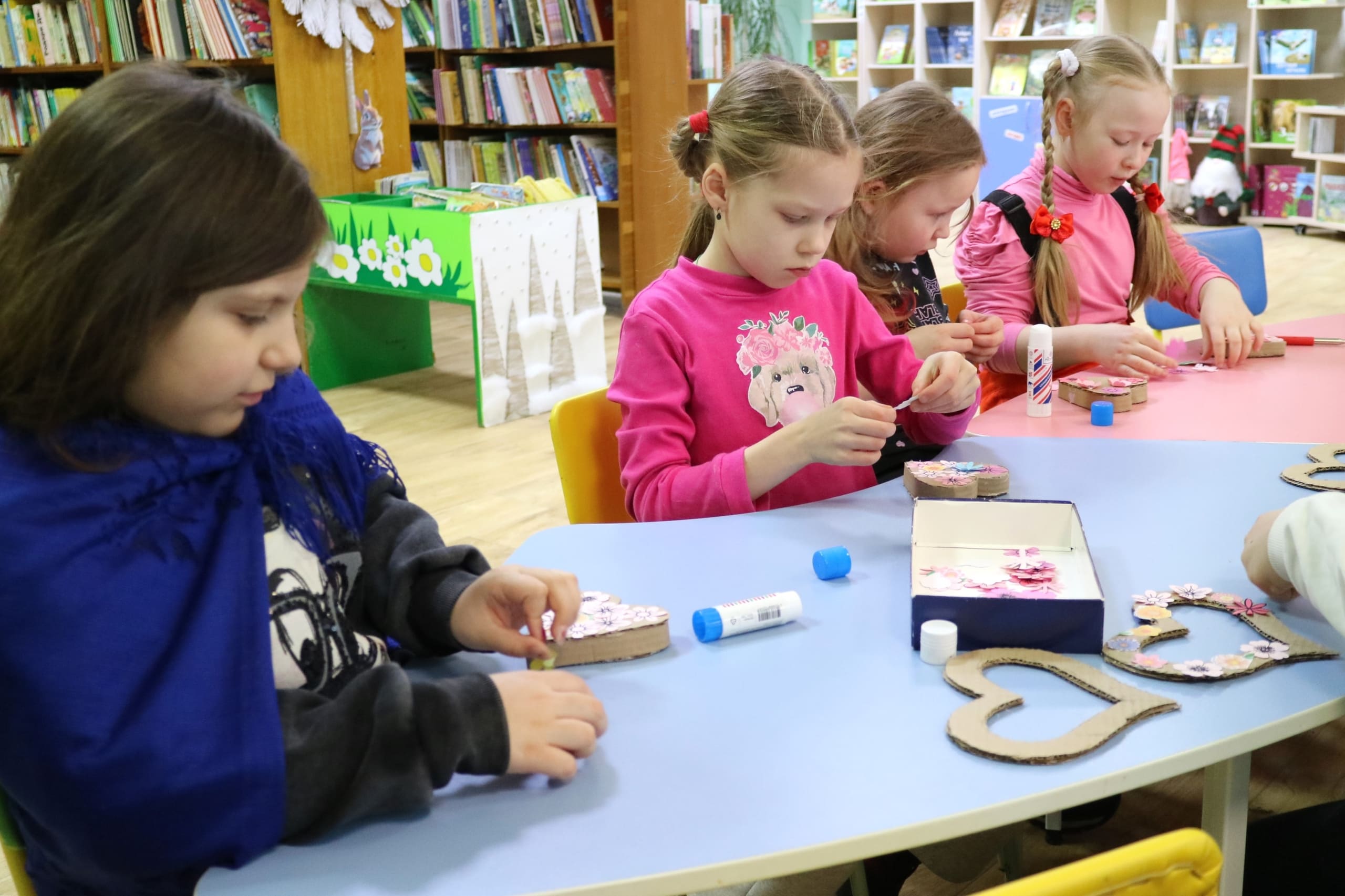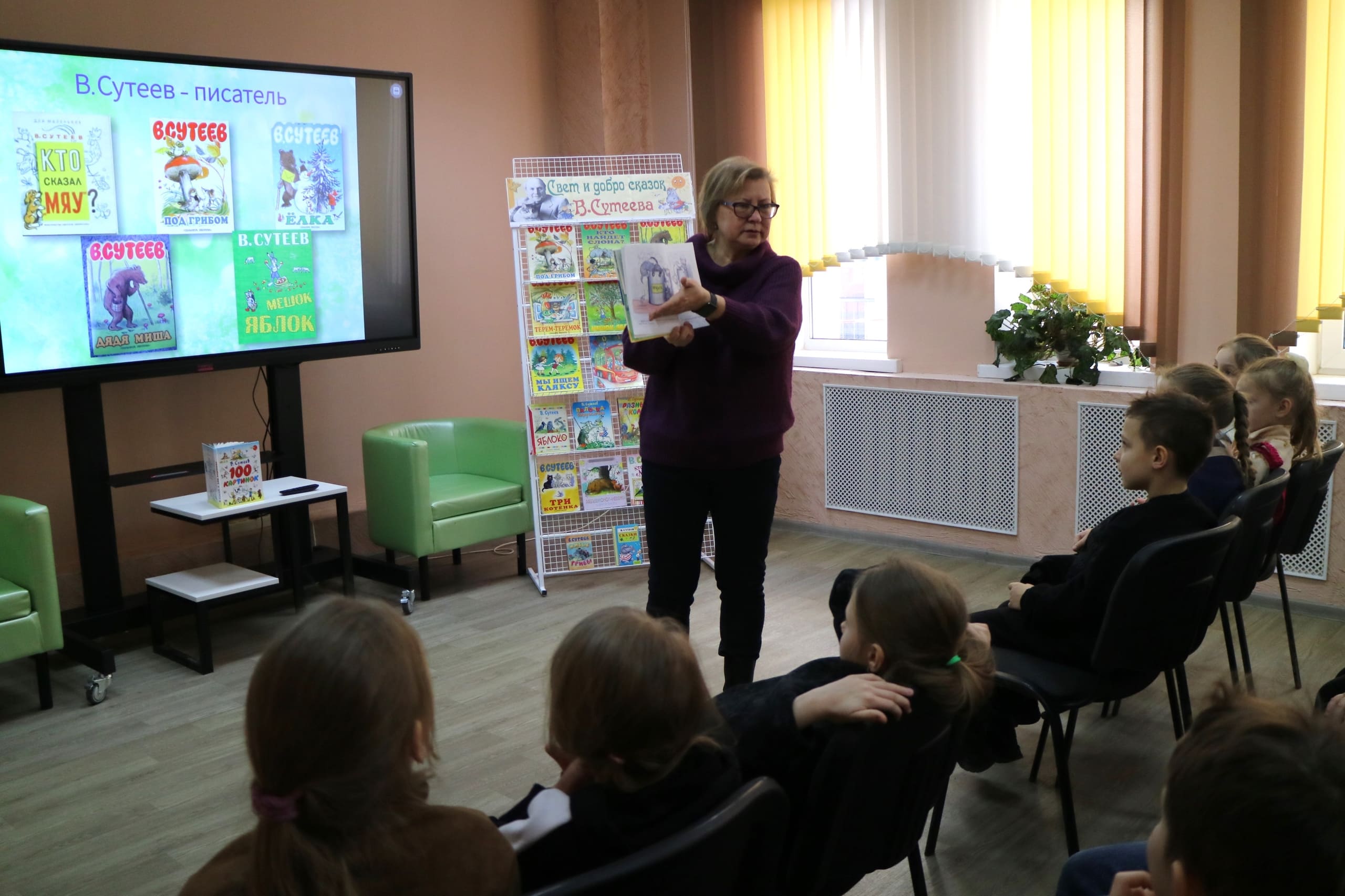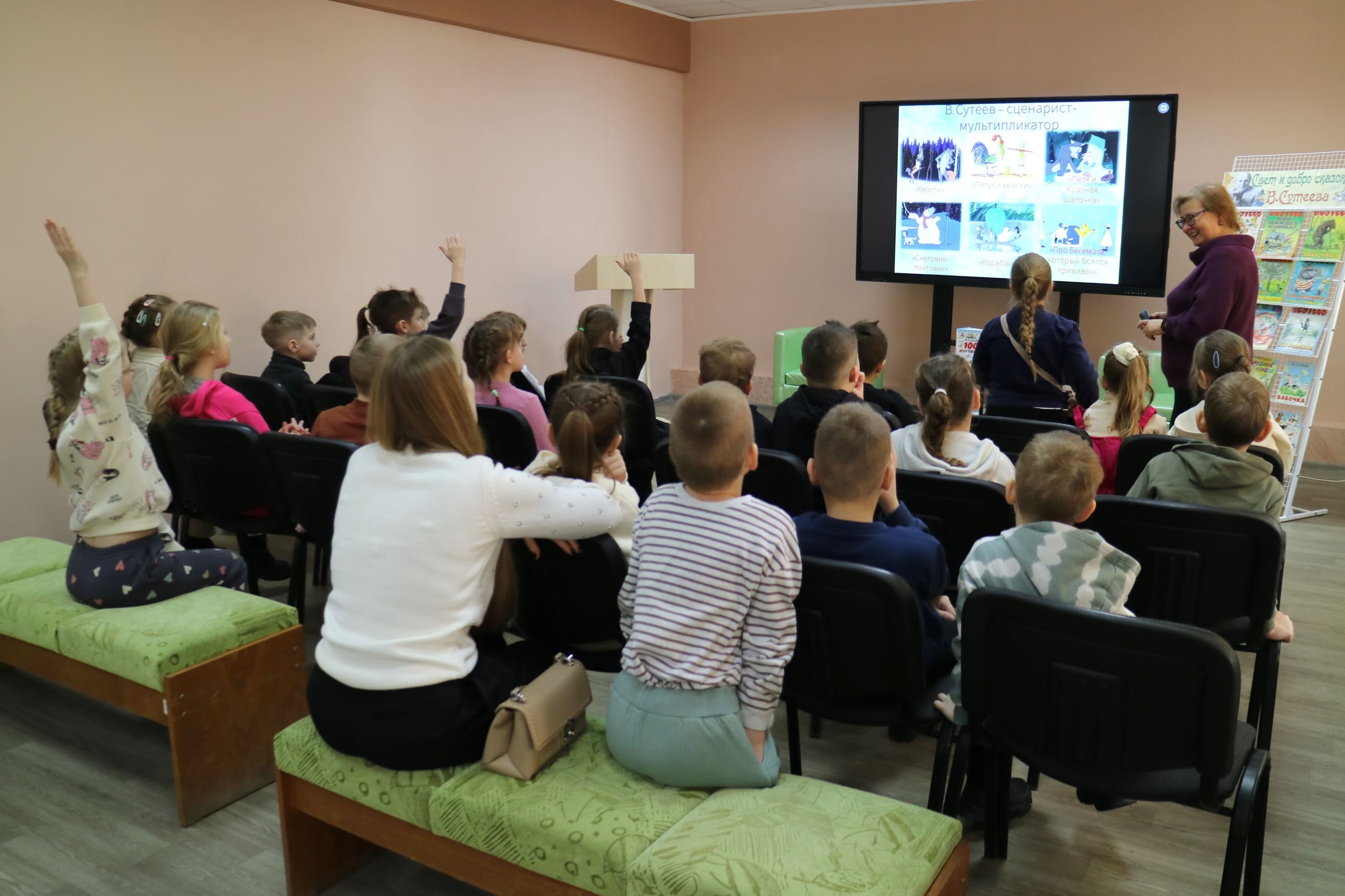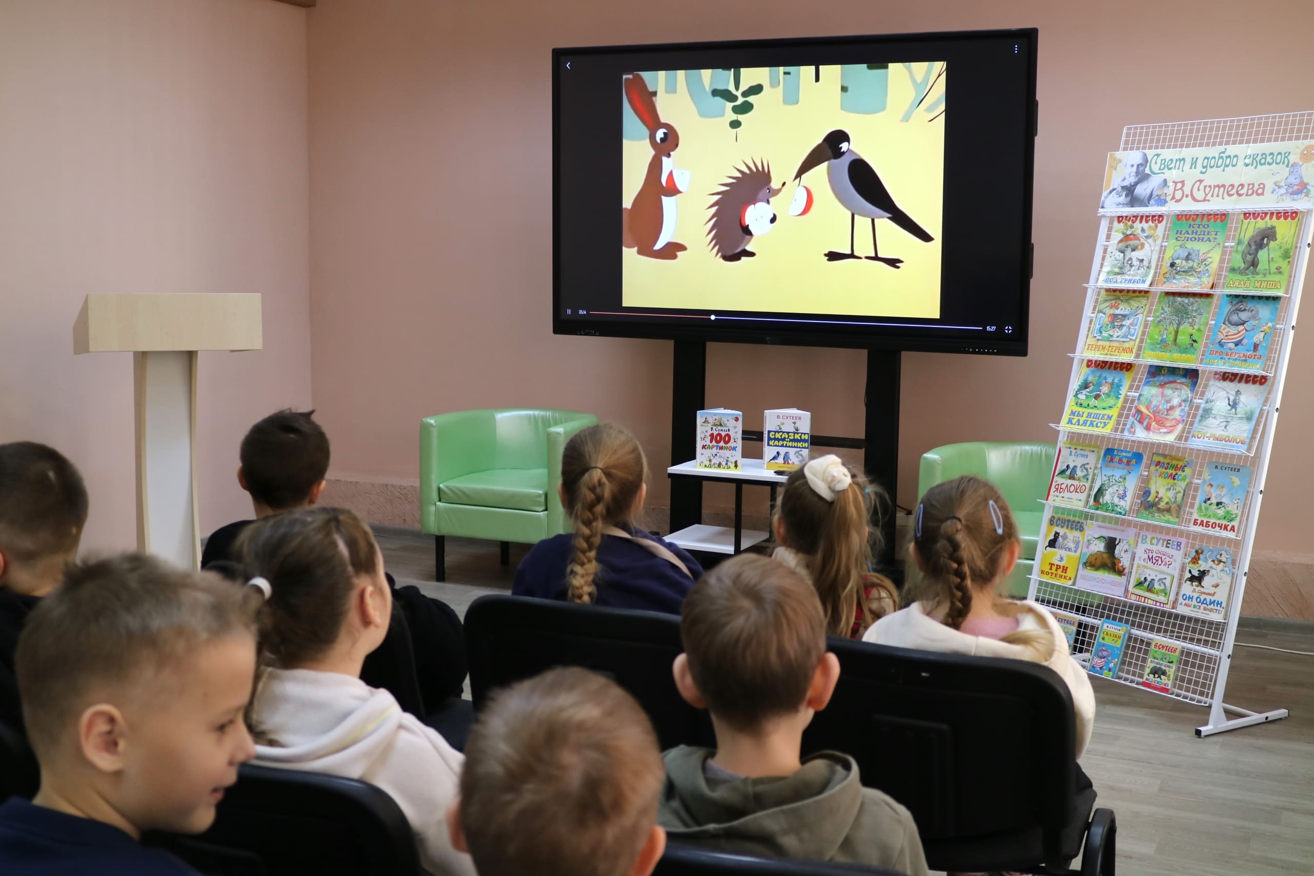 Учащиеся СШ №2 познакомились с историей создания и героями весёлой книги Т. Александровой «Домовёнок Кузька и его друзья». Мальчики и девочки из СШ №6 открыли для себя творчество Владимира Сутеева: детского писателя, иллюстратора книг, сценариста-мультипликатора и просто удивительного человека. Некоторые даже попробовали рисовать одновременно двумя руками, как В. Сутеев. А малыши из СШ №8 мастерили сердечки, чтобы подарить их любимым мамам.