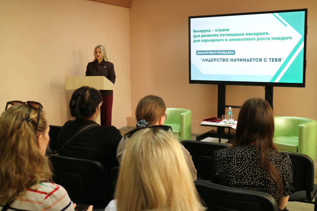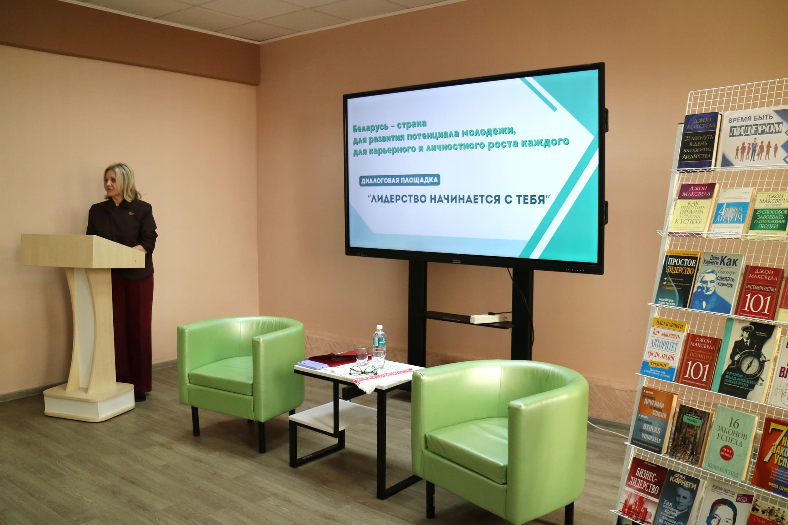 В центральной городской библиотеке г. Жодино состоялась диалоговая площадка, посвященная важной теме лидерства. Мероприятие собрало представителей работающей молодежи из Научно-практического центра НАН Беларуси по животноводству и из Жодинской центральной городской больницы. Одним из спикеров была Елена Лашук, начальник отдела идеологической работы и по делам молодежи Жодинского горисполкома.